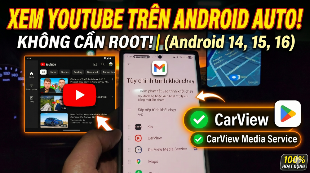 Android 14/15/16 Cài đặt xem Youtube trên Android Auto tìm kiếm bằng giọng nói Next bài trên Volang