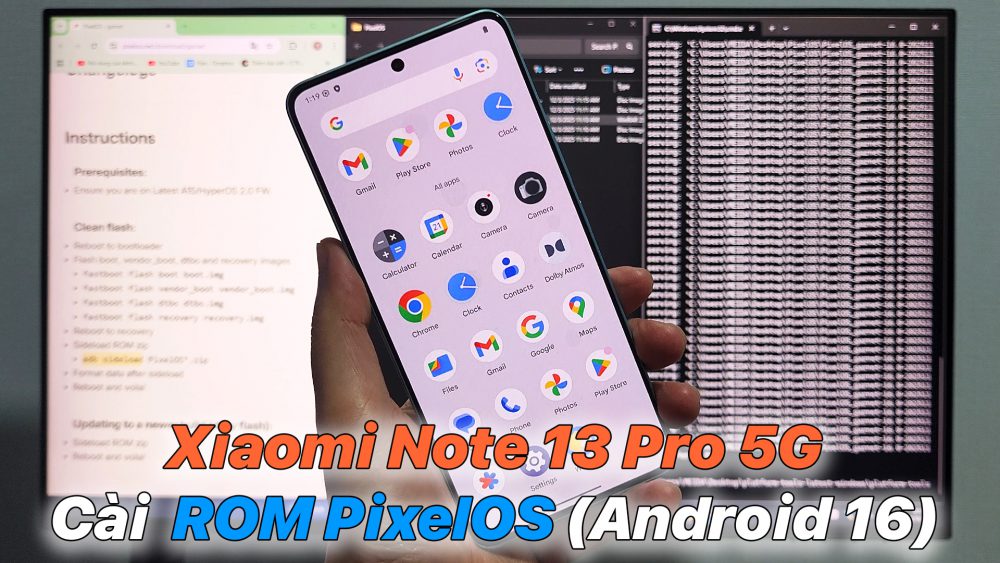 – Hướng dẫn chi tiết cách cài ROM PixelOS Android 16 cho Xiaomi Note 13 Pro 5G: mở khóa bootloader, cài recovery, flash ROM và tối ưu hệ thống để trải nghiệm giao diện Pixel mượt, sạch và ổn định.